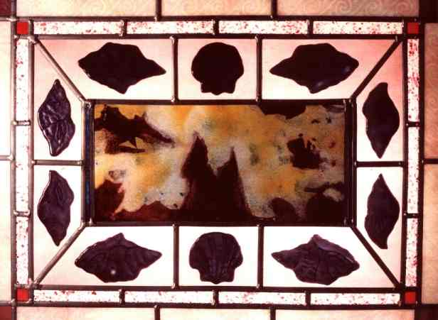 The centre tree is made of two fused pieces of glass with the tree image sandblasted. Weekend Glass Workshops:Glass Fusing and Glass Slumping (May 29-30, 2004) |
